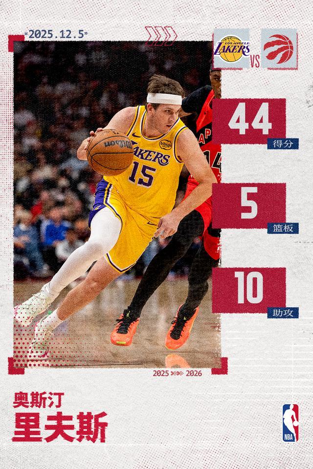 里夫斯单场至少40分5篮板10助攻5三分 成湖人队史第三人