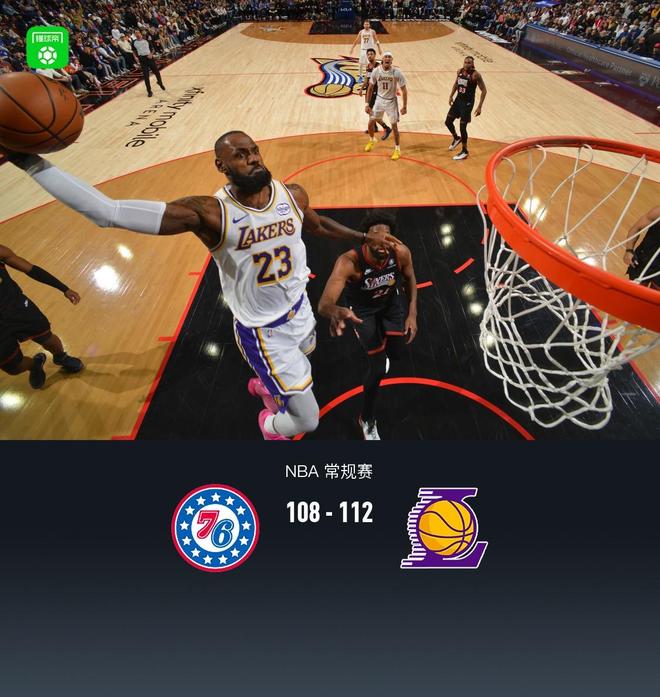 湖人112-108险胜76人,詹姆斯29+7+6,东契奇31+15+11,恩比德21中4
